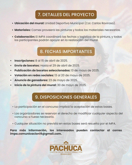 Cabe destacar que, el ayuntamiento de Pachuca firmó recientemente un convenio con el Centro Integral Juvenil a nivel federal, siendo el primero en el estado de Hidalgo en establecer esta alianza. El concurso de muralismo forma parte de las primeras acciones derivadas de dicho convenio.